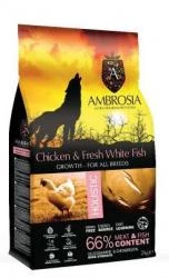 אמברוסיה מזון לגורי כלבים גזע גדול עוף ודג לבן 2 ק"ג ורוד אולטרה פרימיום