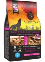מזון יבש לגורי כלבים גזע גדול אמברוסיה עוף עם סלמון 12 ק"ג